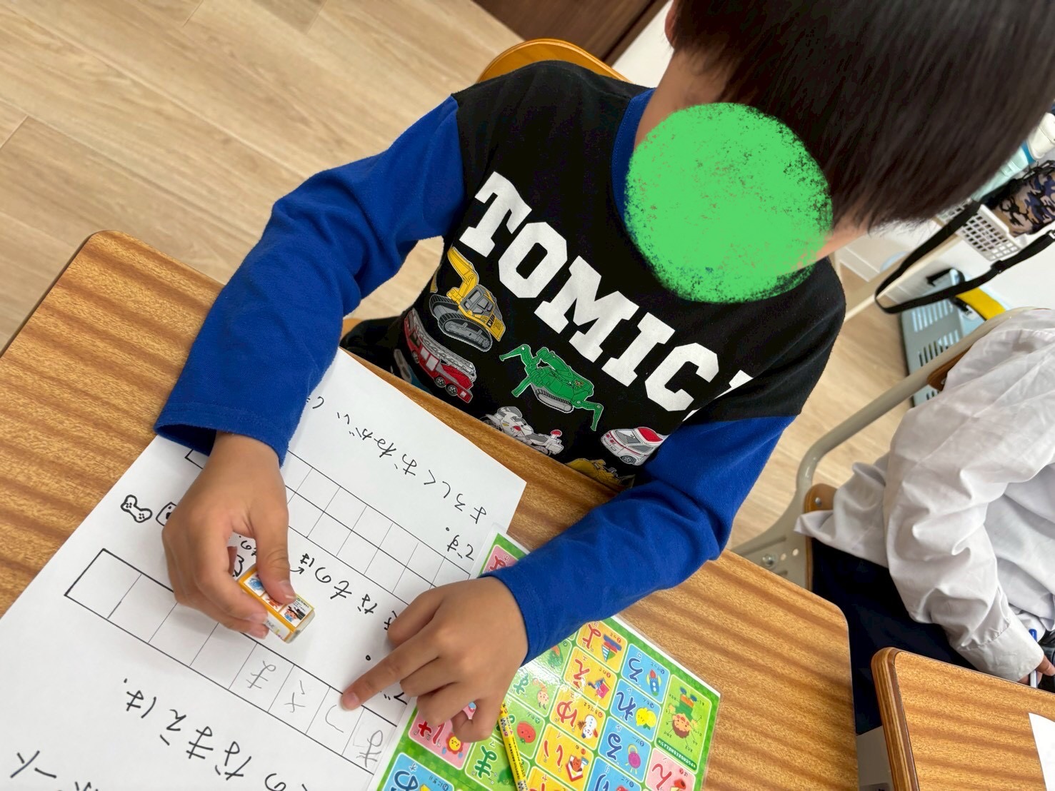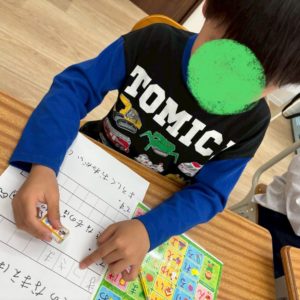 るんるんではパスポートがスタート▶️ 新一年生は初めてのパスポート、ひらがな表を見ながらワークシート記入✏️ お兄さんお姉さんのお手本の発表を聞いて、自己紹介に挑戦💪 ドキドキしましたが先生と一緒に発表する事ができました👏
