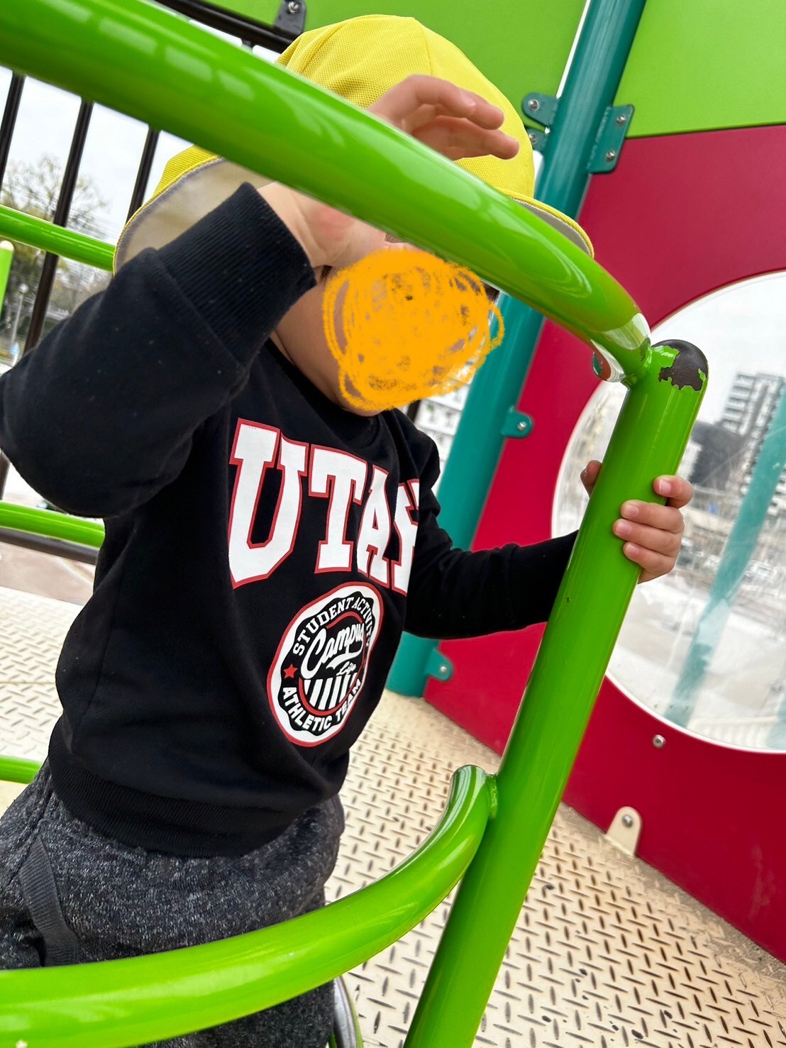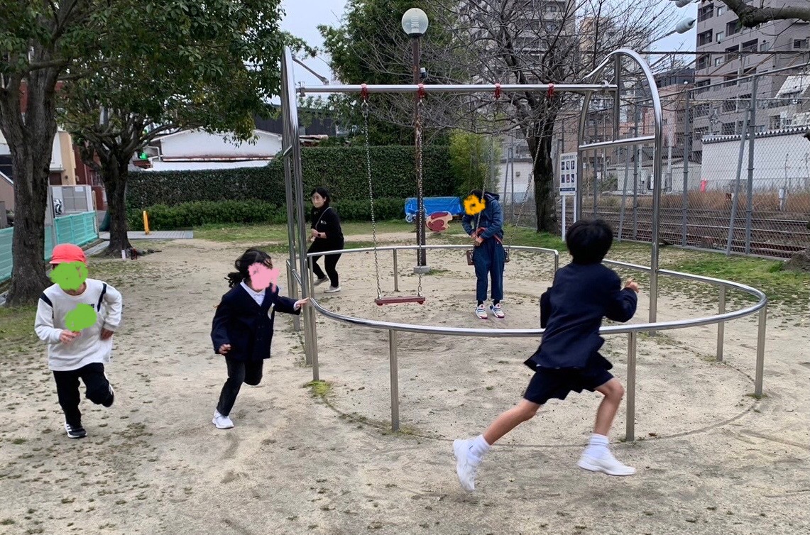 子どもたちは寒さに負けないで、元気に外遊び👹