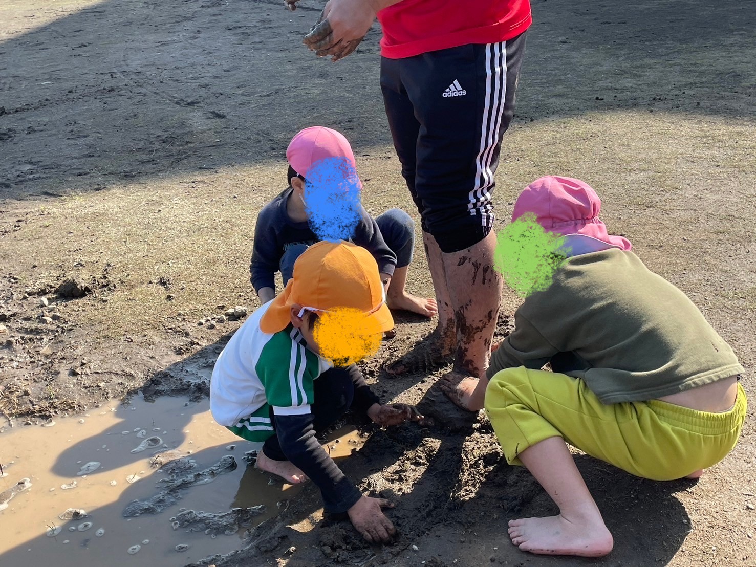 児発では、子どもたちと一緒にどろんこを使って活動をしました💦