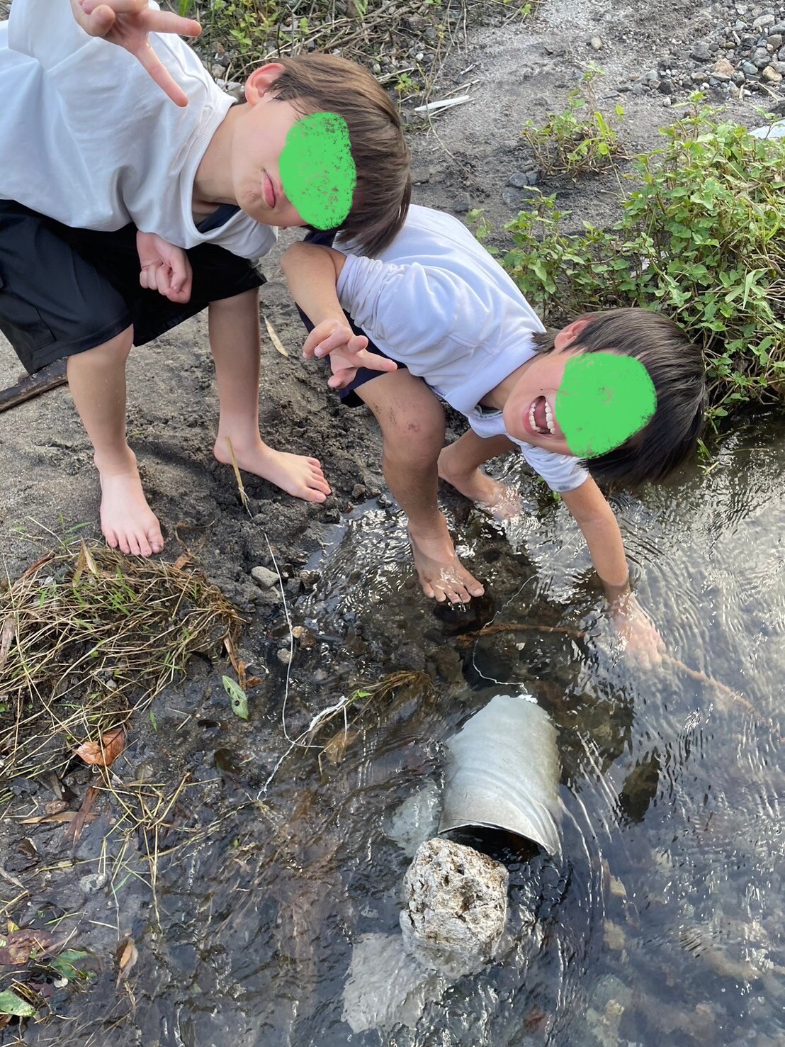 仕掛けを設置したり、探している間も足を水につけてひんやり🌬