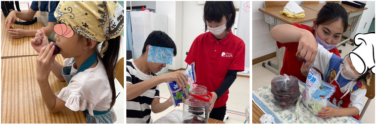 恐る恐るプラムの試食、皮は苦くて、実は甘くて、種に近いとまた苦い!!と丁寧な食レポをしてくれました 梅シロップを作ったみんなにはプラムジュース作りはお手のものでした👍