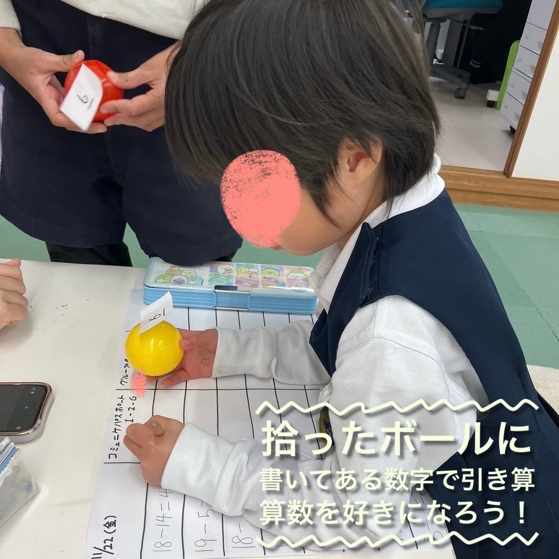 こんにちは🙆 ドリームるんるんではボールバラバラ事件発生!?😲 …ではなくコミュニケパスポート中! 部屋に広がっているボールの中から2つ拾って、書いてある数字で引き算に挑戦🧮 楽しく計算をすることができました✨