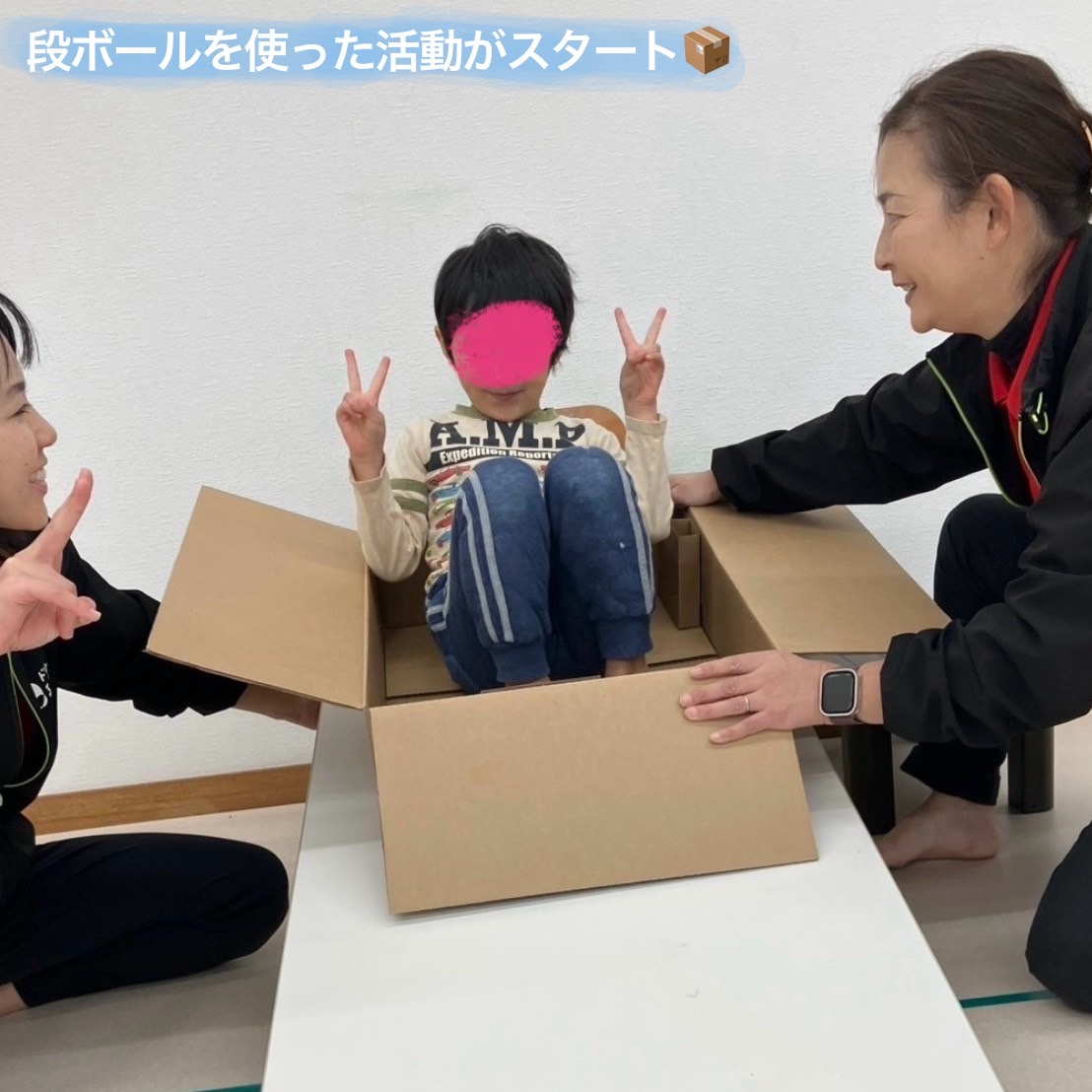 るんるんの児発では先週から段ボールを使った活動が開始!
