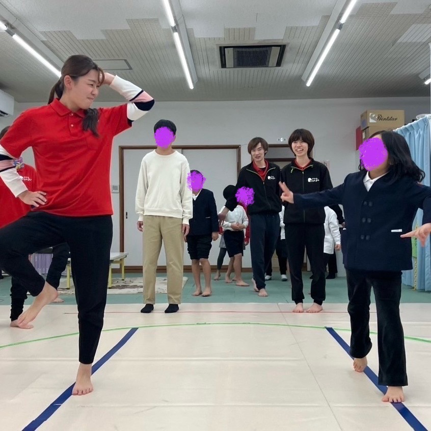 こんにちは♪ るんるんの放デイでは、リズミックジムがスタート! 音楽に合わせてステップを踏んだり、ポーズをとったりたくさん体を動かしました🏃