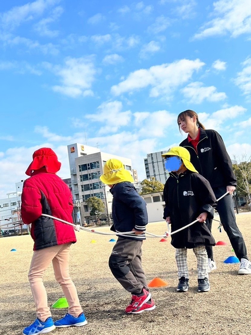 児発ではロープを使って活動しました🪢 電車に見立ててみんなで発進🚃
